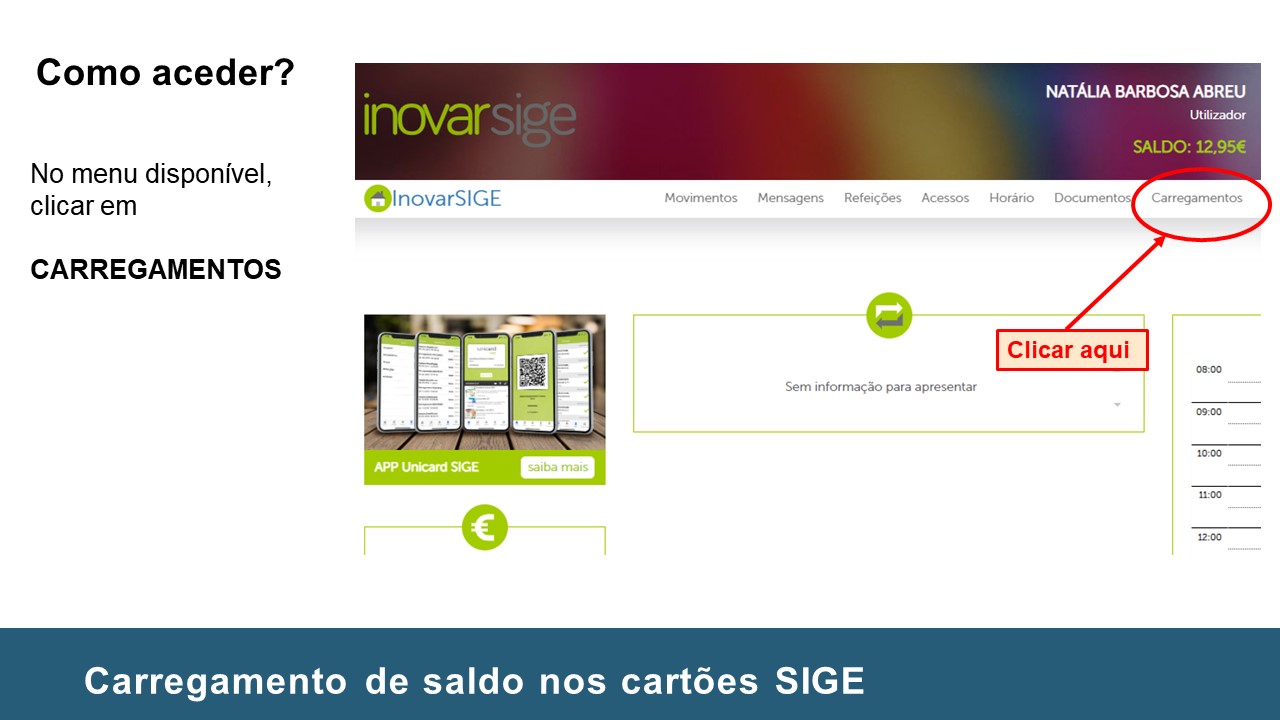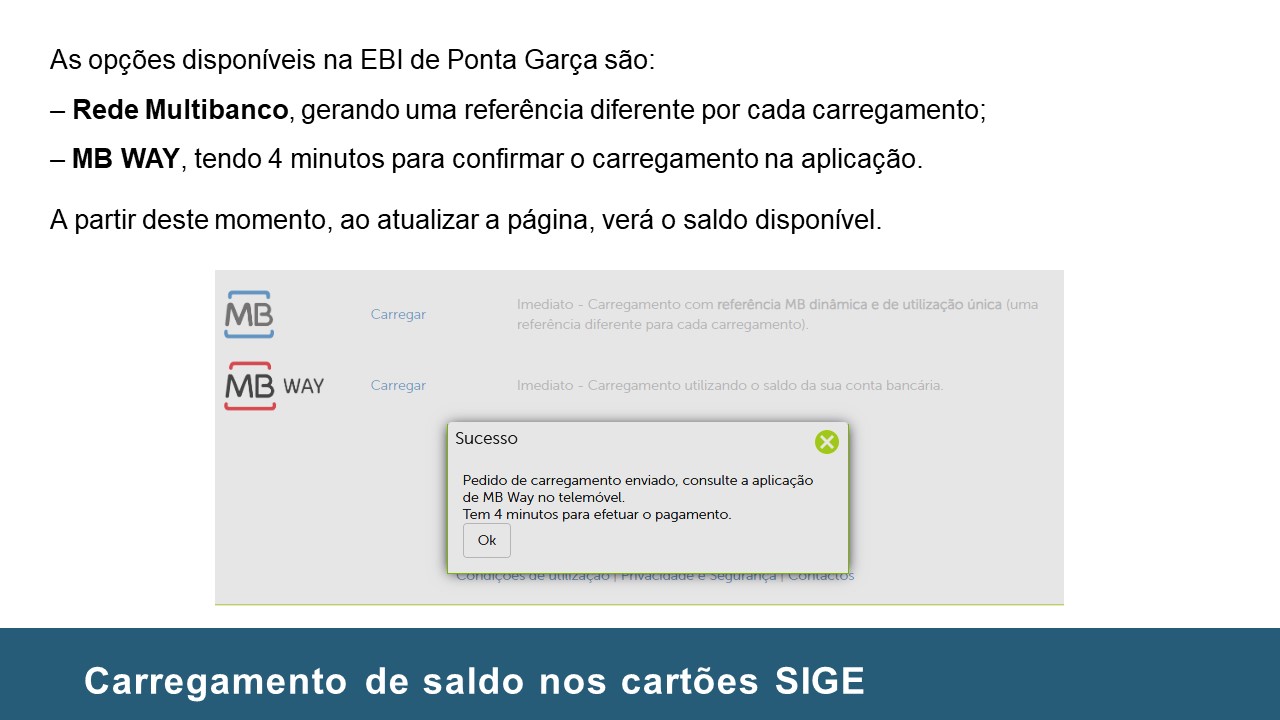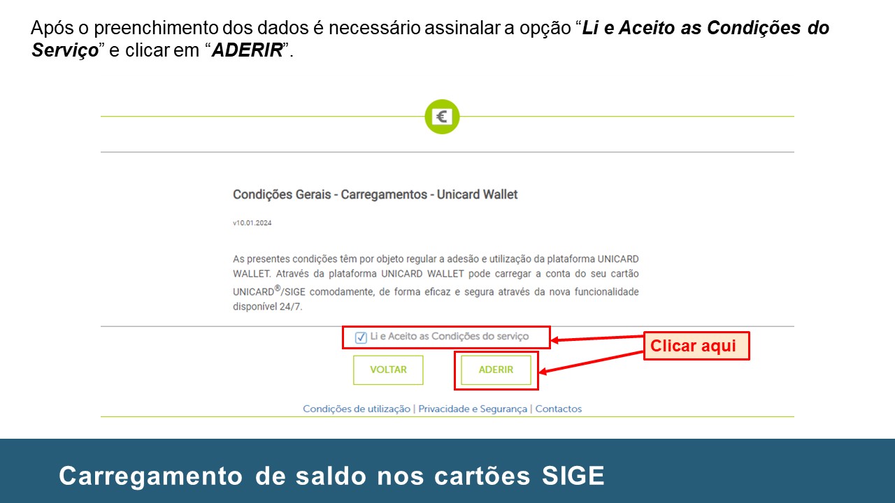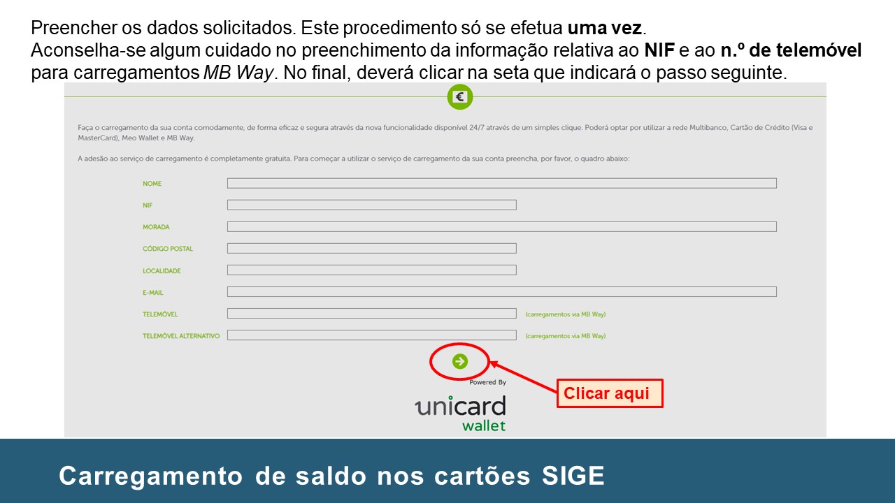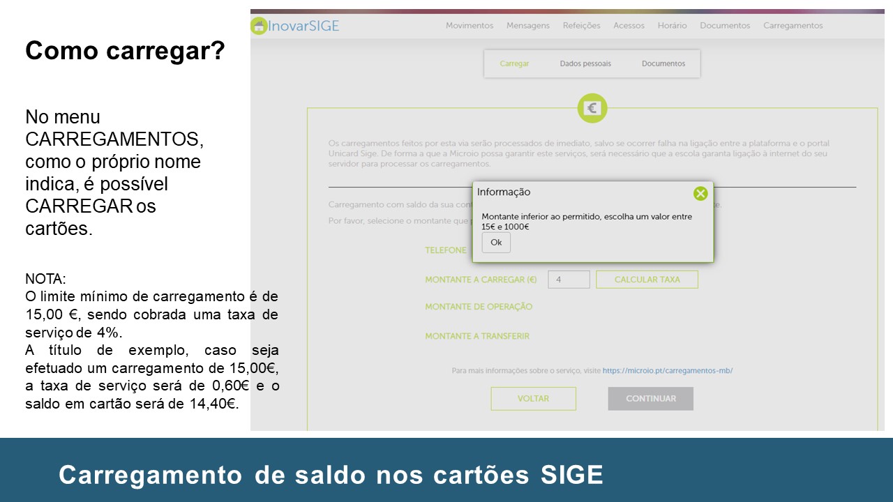 Instruções no carregamento de Cartões